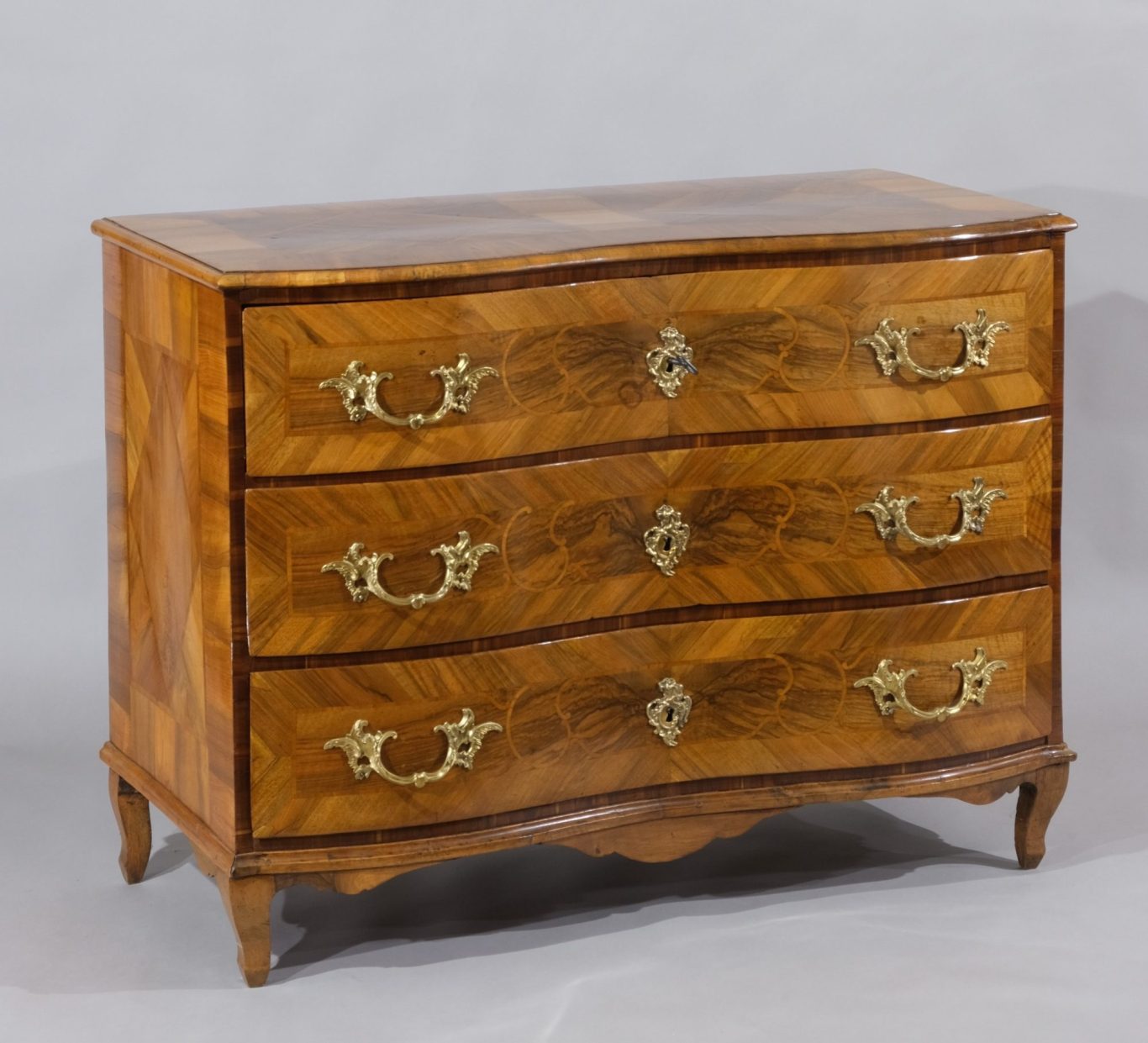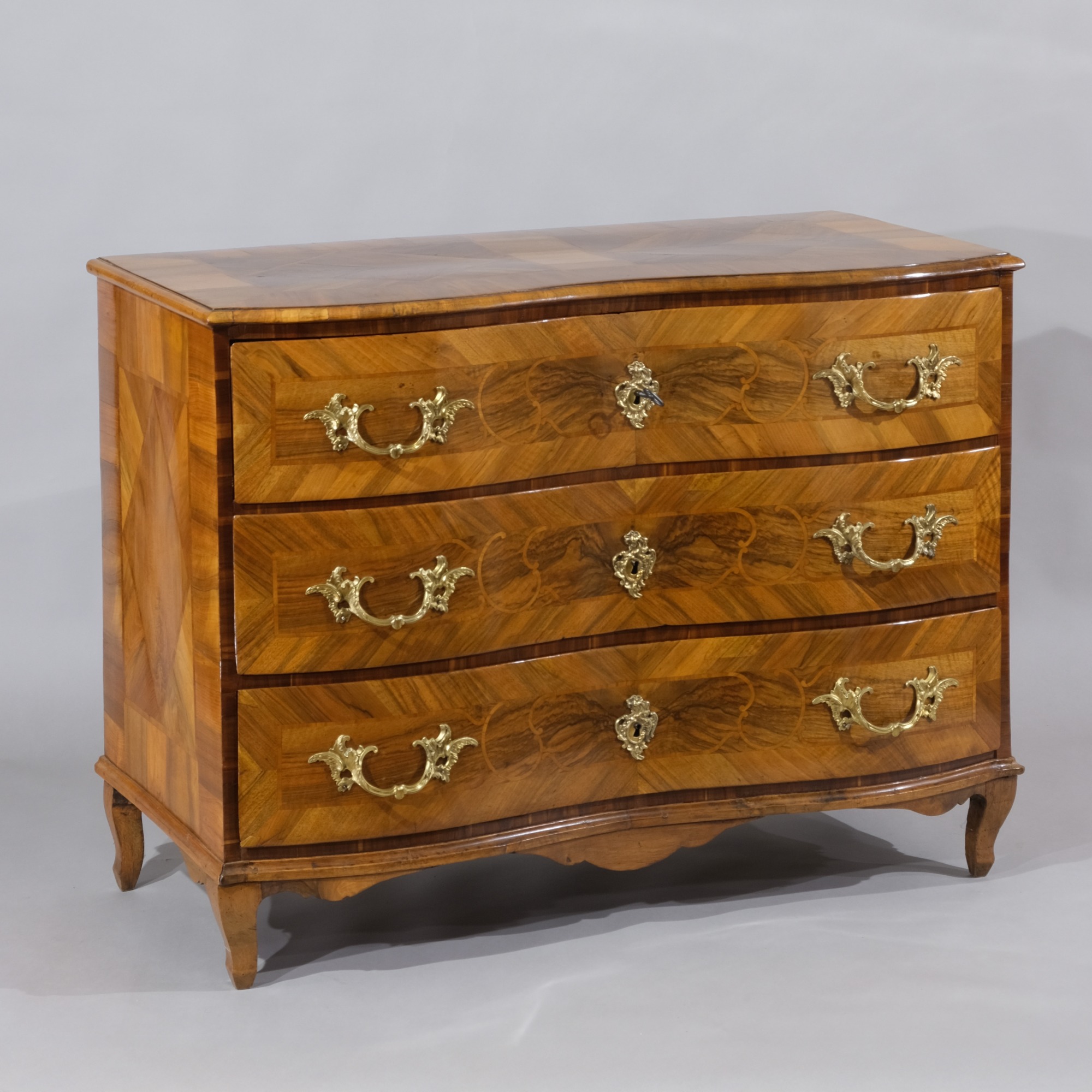 Dreischübige Barock-Kommode mit geschweifter Front