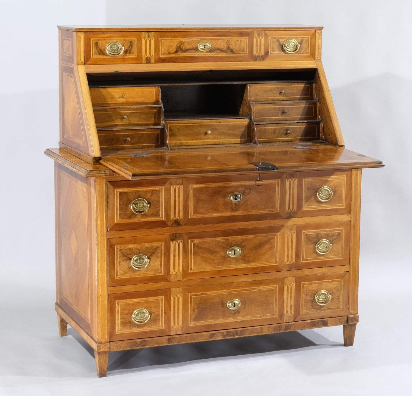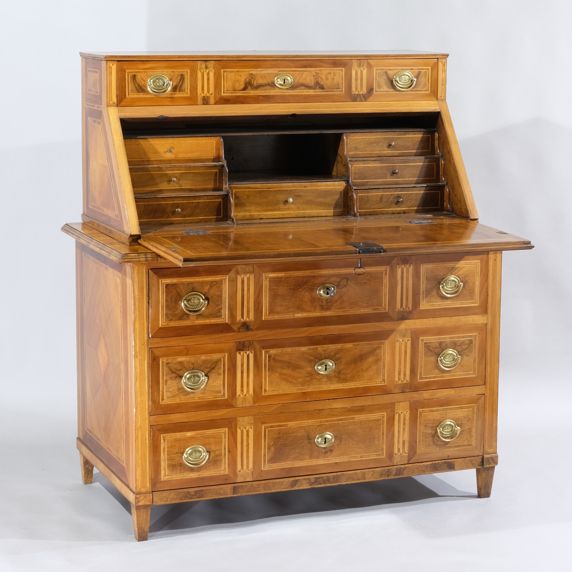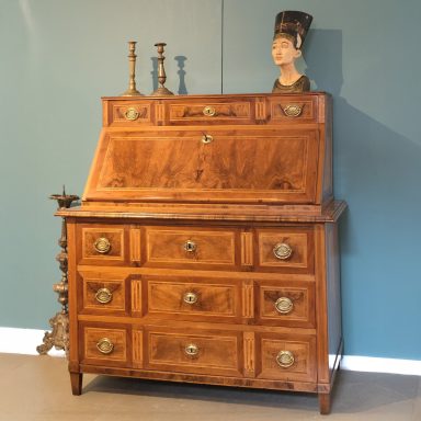 Furnierter Schrägklappensekretär in Nuss und Eibe