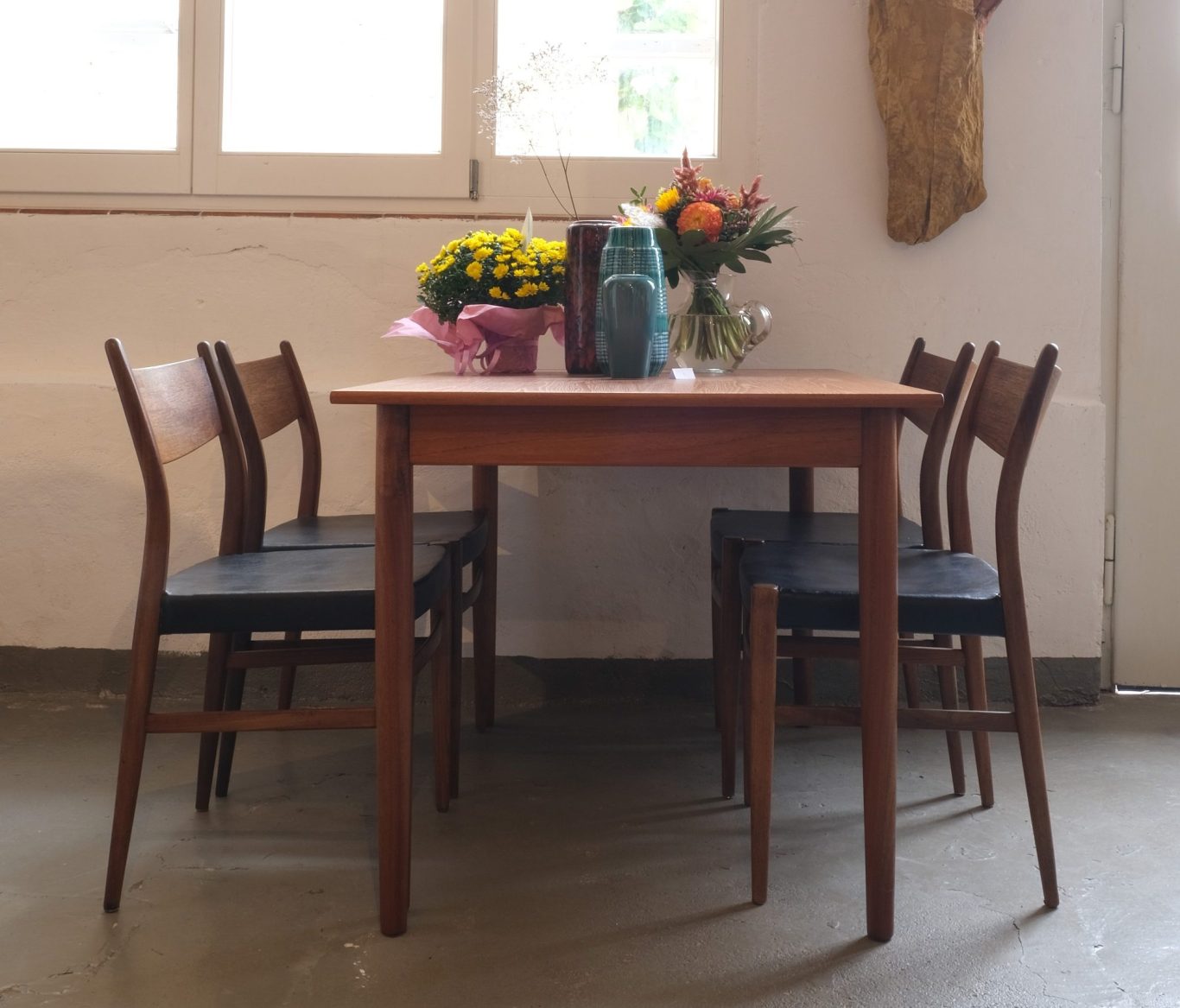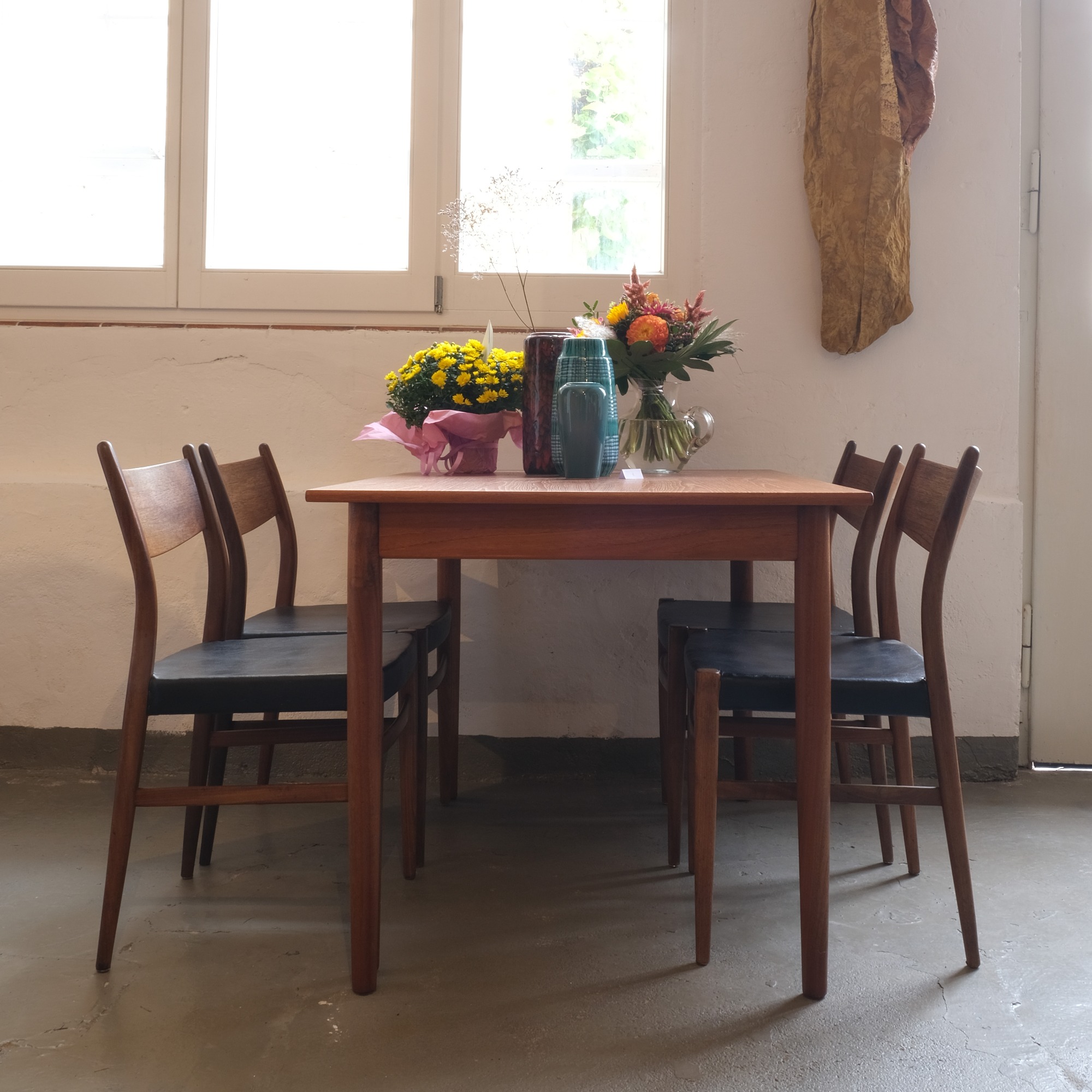 Der Midcentury-Design-Esstisch, entworfen vom holländischen Designer Cees Braakmann, ist ausziehbar auf eine Länge von 1,60 m und ist aus Teakholz gefertigt. Er passt hervorragend zu den Teakstühlen in unserem Sortiment, die ebenfalls von Braakmann entworfen wurden.