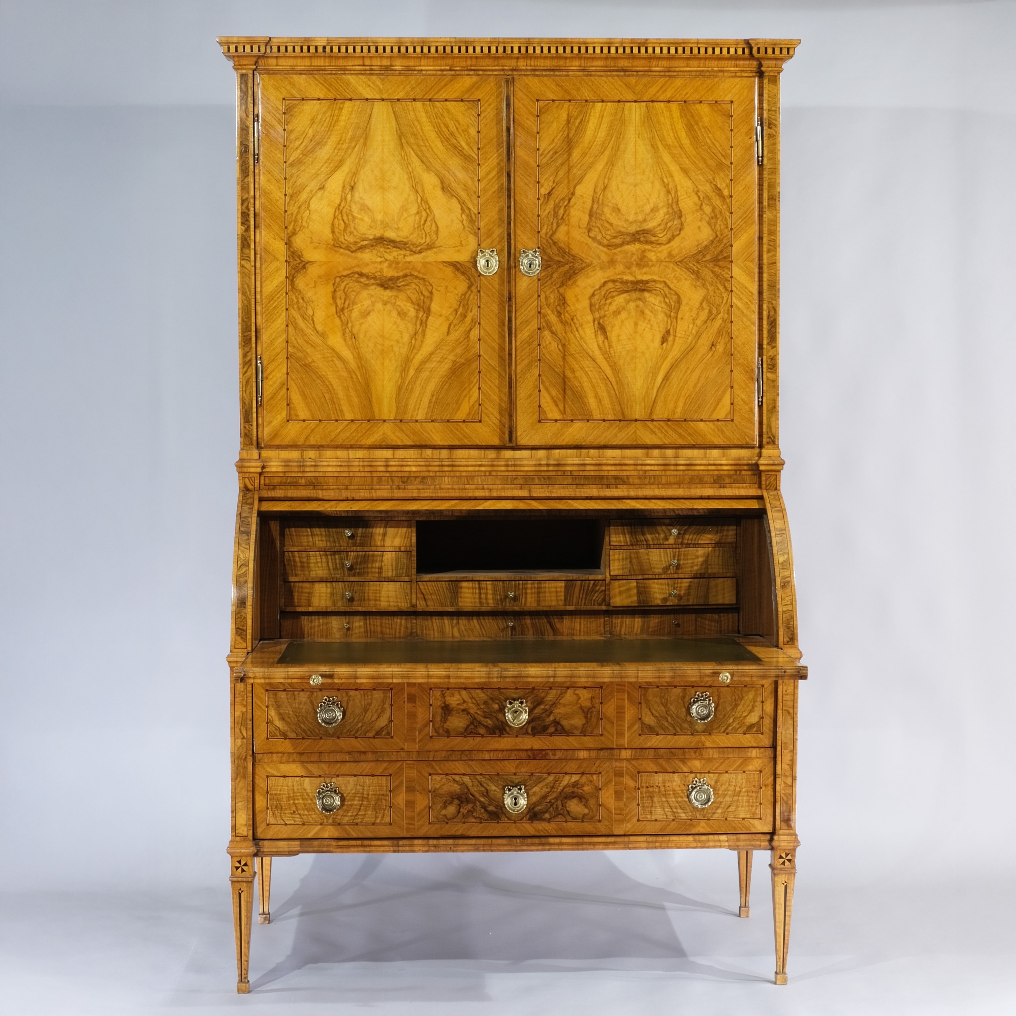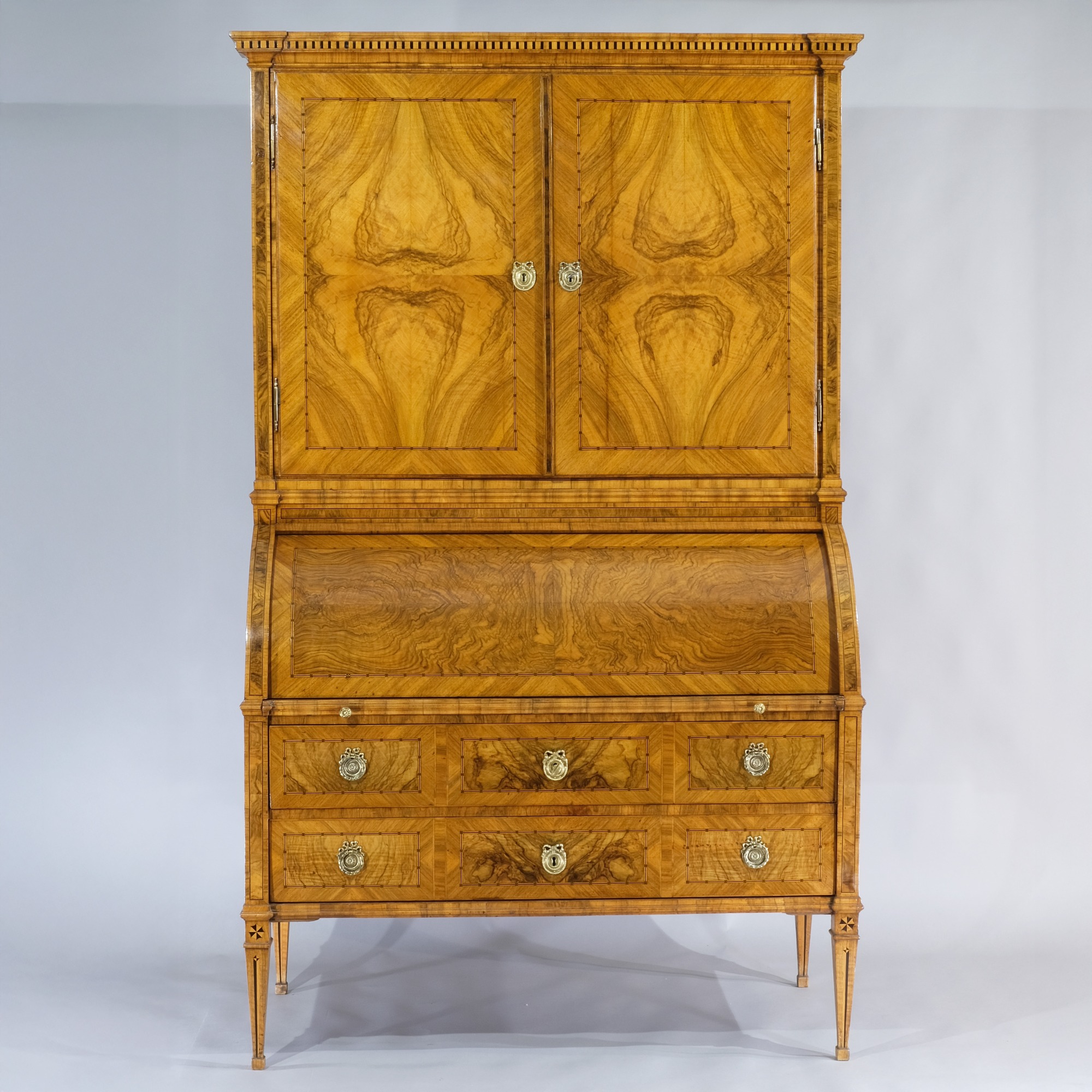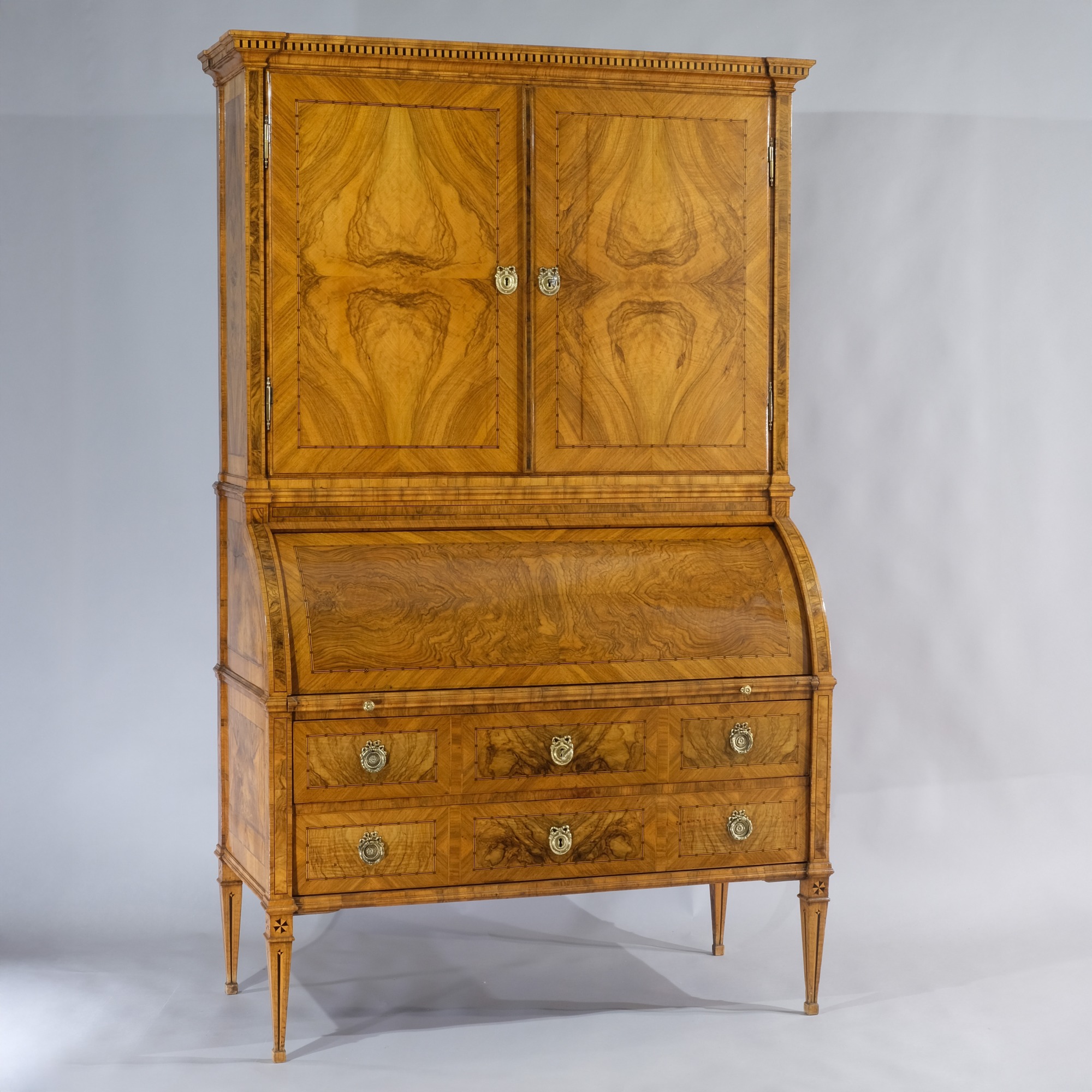Eleganter Zylinder-Schreibschrank in Nussholz furniert