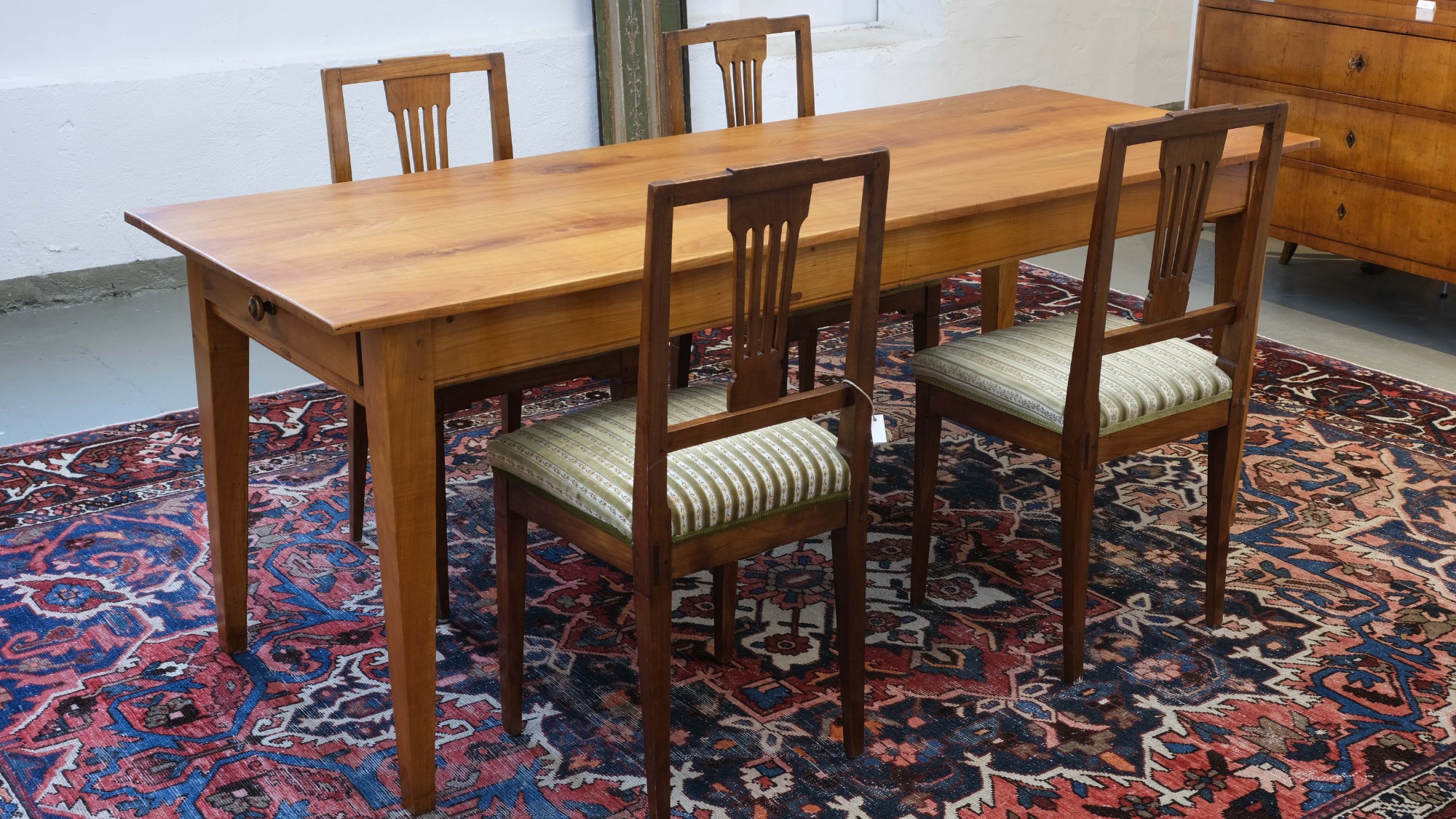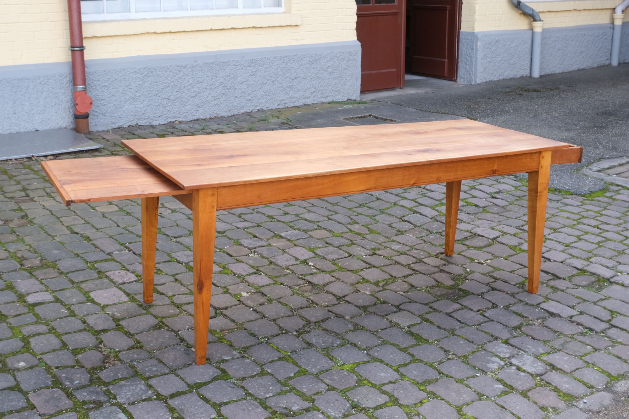 Der Biedermeier-Esstisch ist aus massivem Kirschbaumholz gefertigt und dürfte um 1820 entstanden sein.